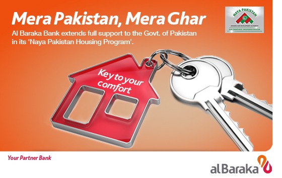 Al Baraka Bank (Pakistan) limited offers the home finance facility for low cost housing program, “Mera Pakistan Mera Ghar“, under the guidance of State Bank of Pakistan & with the support from Government of Pakistan, through a Shariah-compliant home financing scheme, with attractive features.