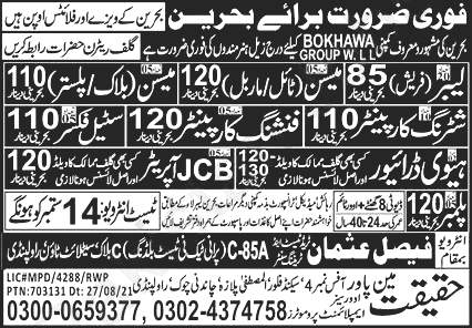 Steel Fixer, Heavy Driver, JCB Operator and Plumber in Bahrain.