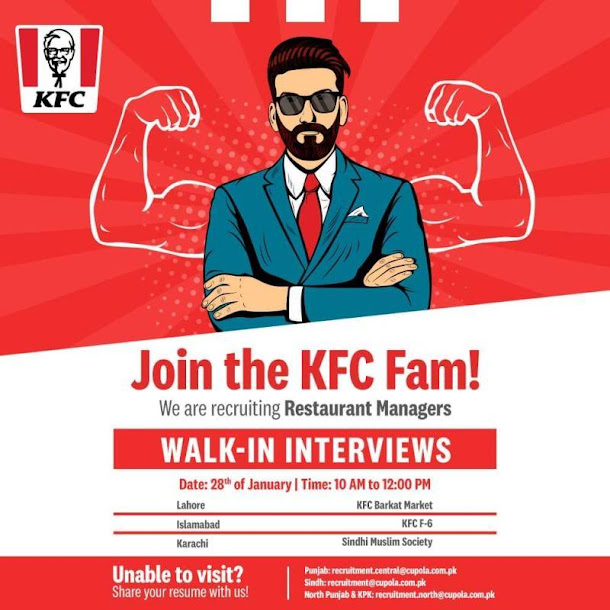 KFC Careers opportunity for all Pakistani citizen male & females may apply kfc near me branches on different positions.Interested candidates for KFC Jobs in Pakistan may submit online application form on KFC site.You may find here kfc Jobs,kfc part time jobs for students,kfc delivery jobs,kfc shift supervisor and others. details about kfc is fully.