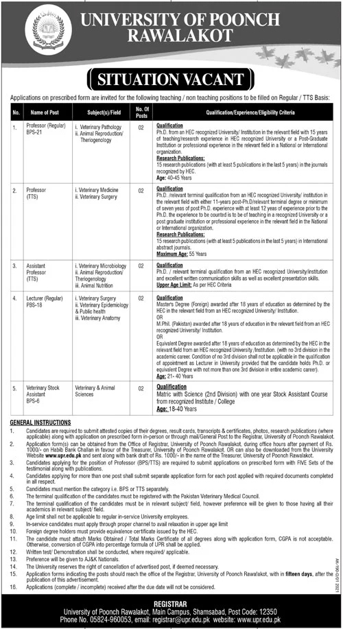University of Poonch Rawalakot UPR Jobs 2021