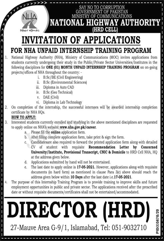 Interested individuals throughout Pakistan who completed their studies in the given discipline are invited to Apply Online. You have to visit the NHA’s .