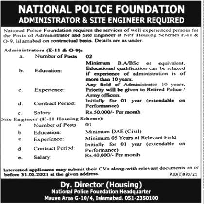 How to Apply for National Police Foundation Islamabad Jobs 2021 ?