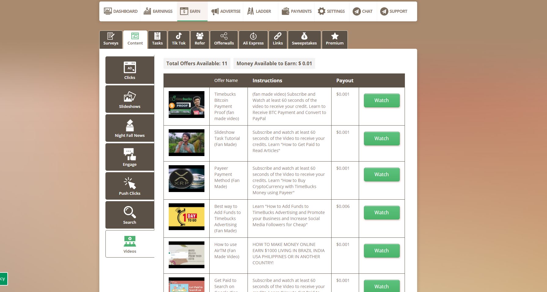 Get paid for each video watched. You will also gain 10 sweepstakes entries per video you watch. Each time you watch a video, the counter on this page will go up. Please watch the embedded video below which will walk you step by step what to expect so you can get up and earning immediately.