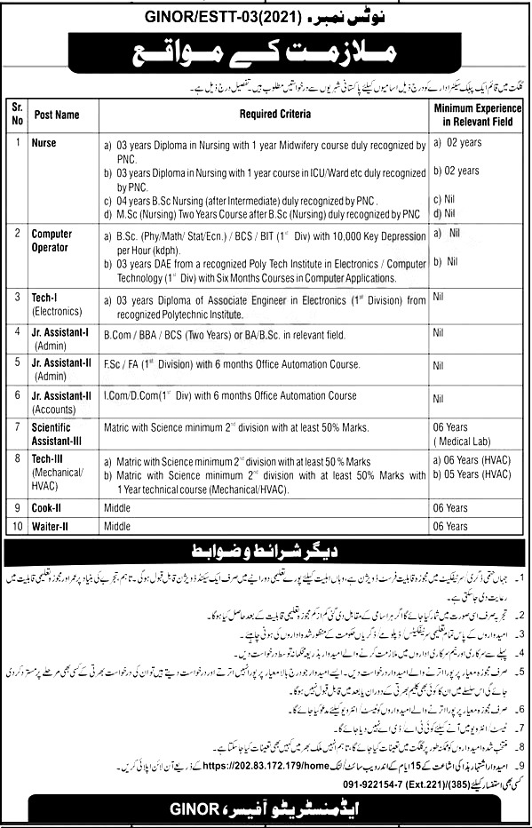 Matric with Science minimum 2nd Division with at least 50% Marks.