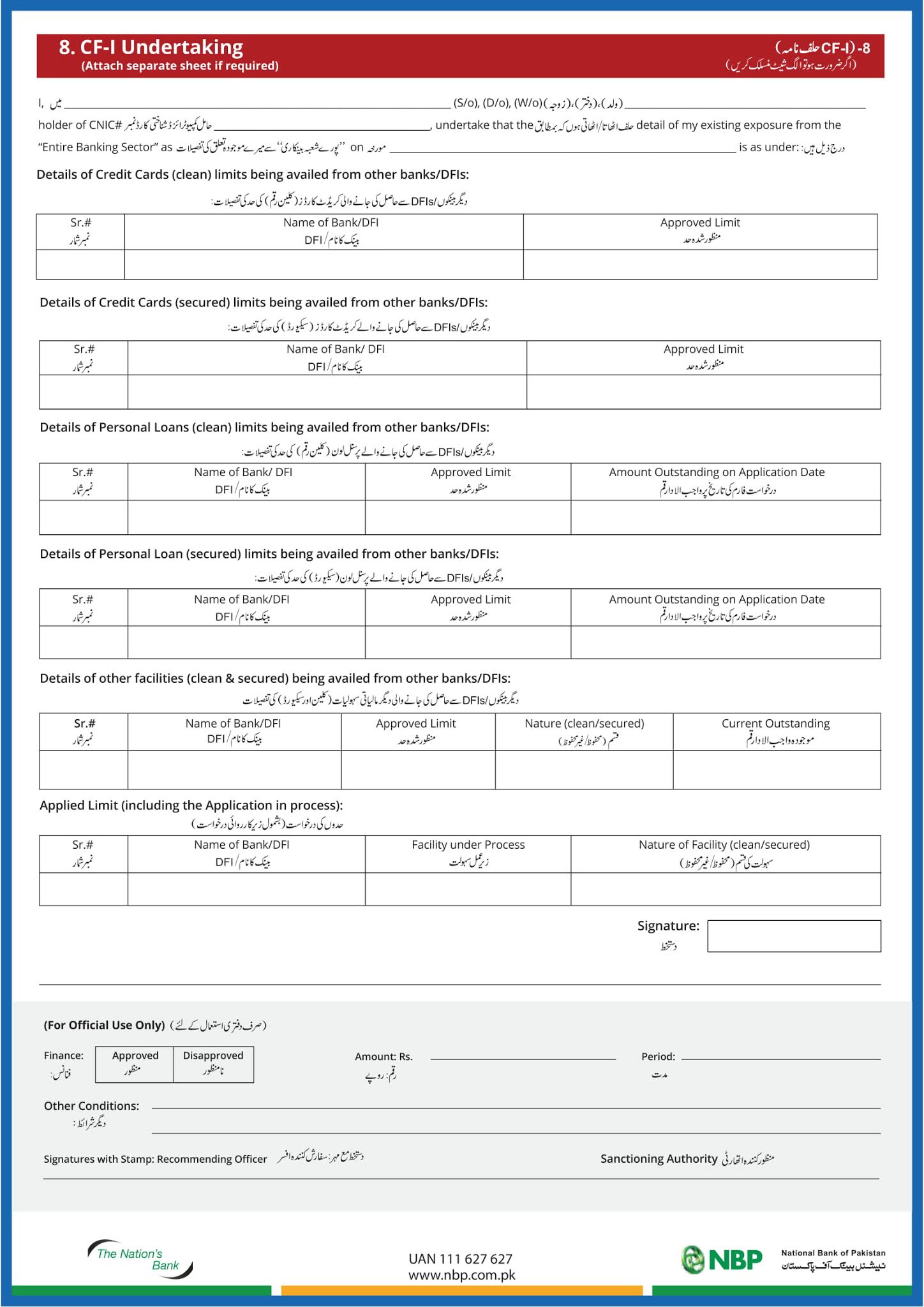 • For permanent employees of Government, Semi Government and autonomous bodies receiving salaries through NBP