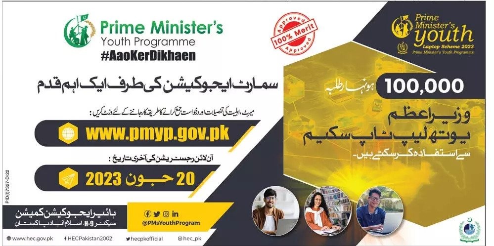 The Honorable Prime Minister of Pakistan announced that government will provide laptops to talented students. The project aims to give opportunities in the form of laptops to the young and talented students studying in public sector Higher Education Institutes (HEIs) across the country and Azad Jammu & Kashmir. The project has been approved by ECNEC, as the Prime Minister Youth Laptop Scheme (PMYLS) Phase-III. In this regard, 100,000 laptops would be awarded to talented students on merit through an online transparent system. In the past, two such schemes have been successfully executed by the Higher Education Commission.