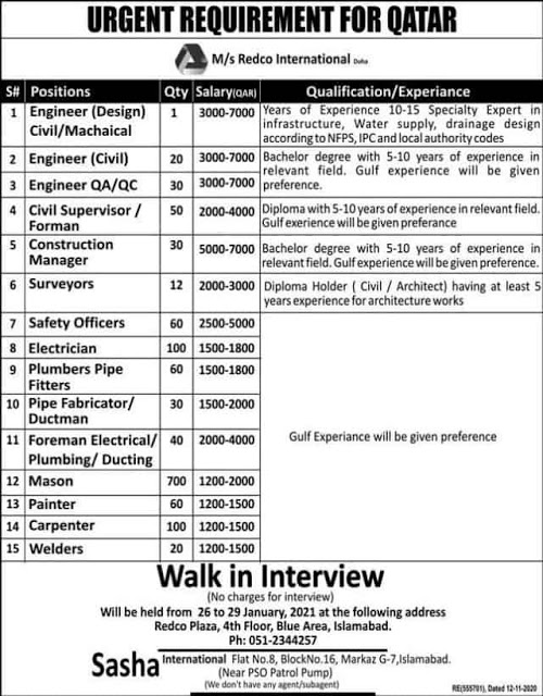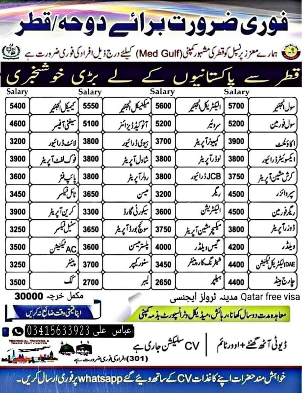 How to Find Jobs in Qatar – Indeed Qatar – Qatar Careers – Jobs in Doha For Pakistani who are hardworking and Skillful . Qatar Jobs new Vacancies . Applications are invited for the Posts of Engineer Design/Civil Mechanic, Engineer (Civil), Engineer QA/QC, Civil Supervisor, Construction Manager, Surveyors, Electrician, Plumber Pipe Fitter, Safety Officer, Foreman Electrical, Mason, Painter, Carpenter and Welder. Latest Govt of Qatar jobs.