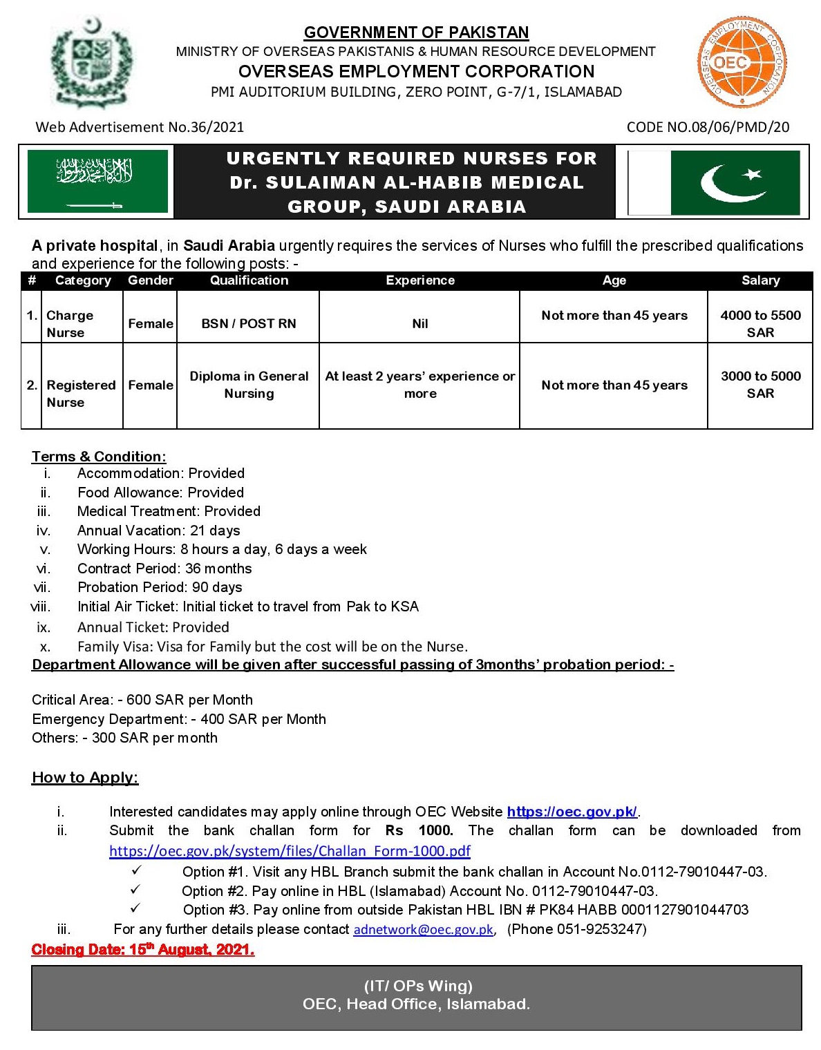 i. Interested candidates may apply online through OEC Website https://oec.gov.pk/.