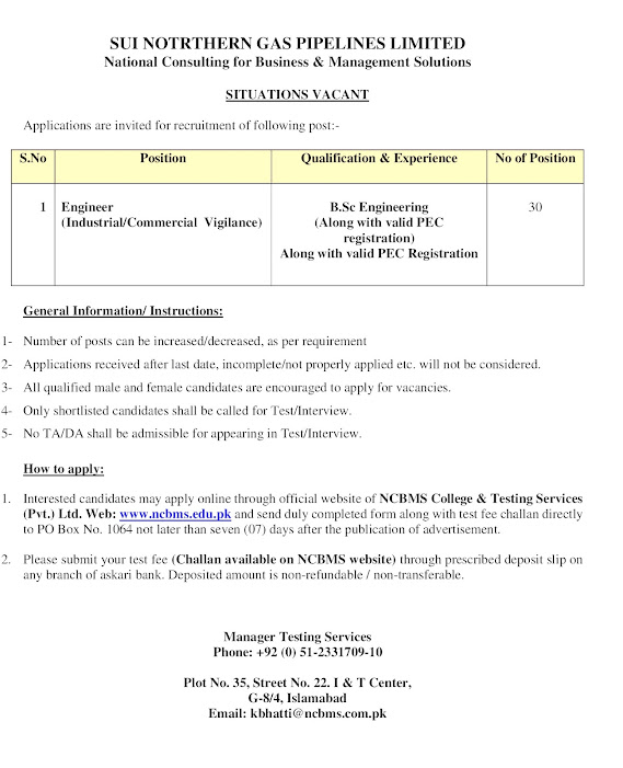 Sui Gas Jobs | Sui Northern Gas Pipelines Limited | SNGPL Jobs