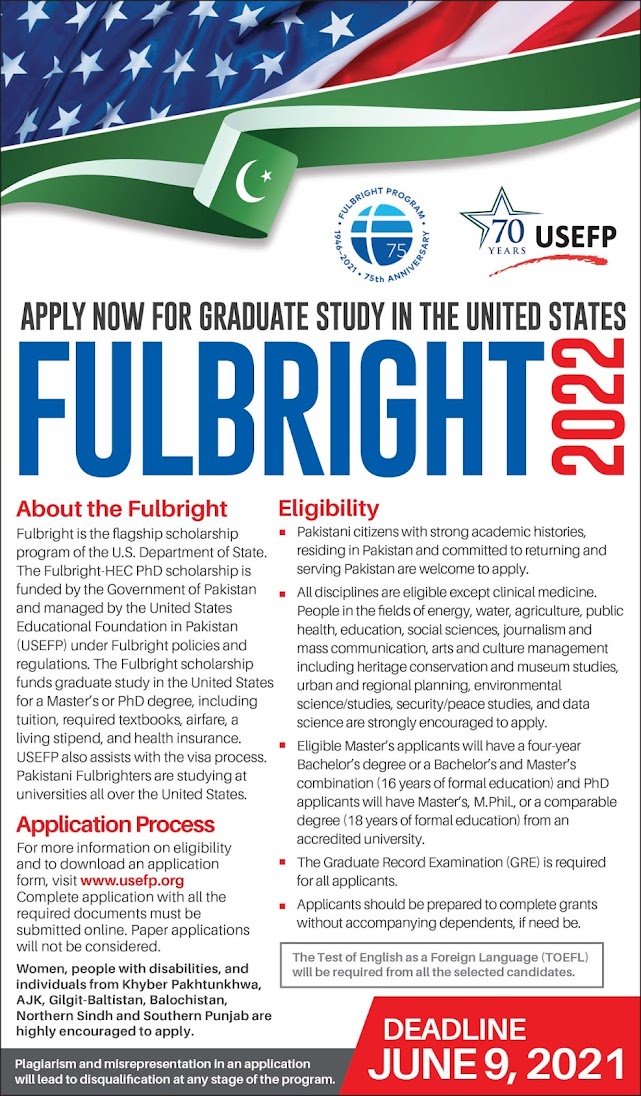 Scholarship: USEFP Fulbright Scholarship for BA MA & Ph.D. 2021.